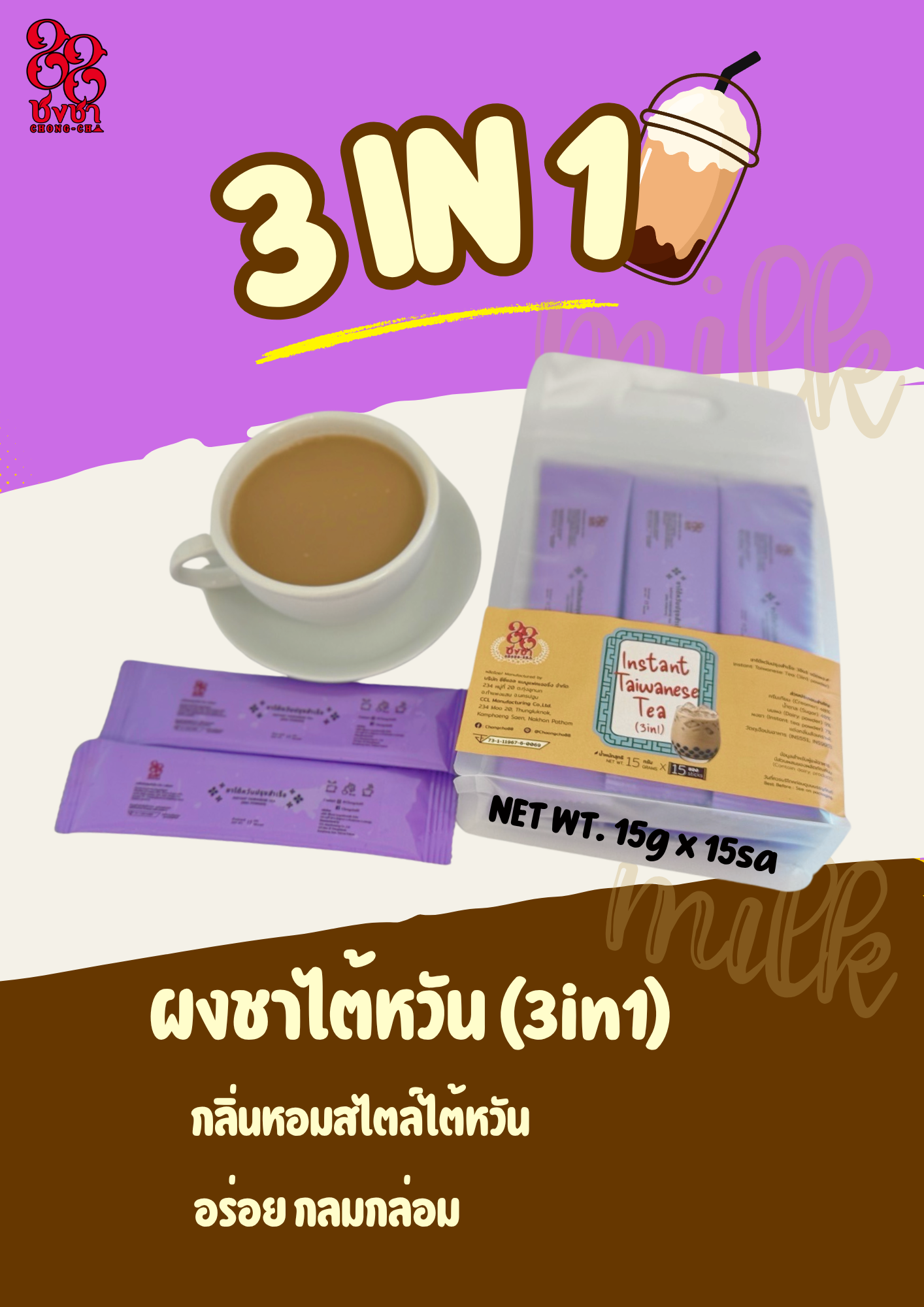 🤎 ผงชานมไต้หวันสำเร็จรูป(3in1) พร้อมชงดื่ม ตรา Chongcha88 🤎