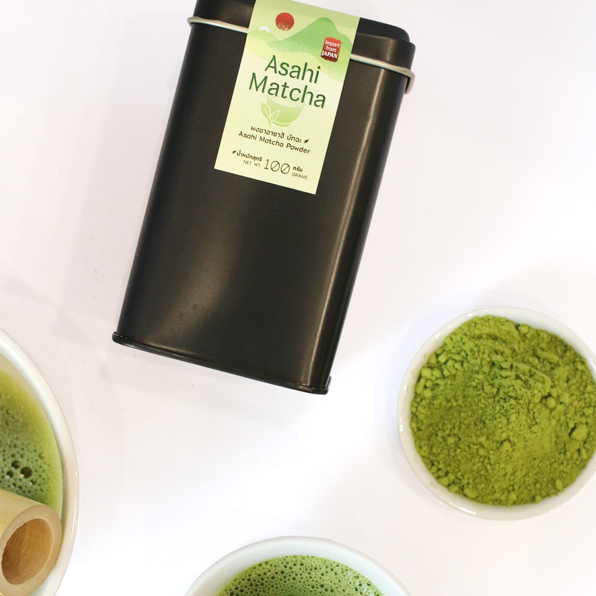 ชาเขียวมัทฉะ 100% นำเข้าจากเมืองอูจิ ประเทศญี่ปุ่น แหล่งกำเนิดชาญี่ปุ่นแห่งแรกของโลก เป็นใบชาคัดคุณภาพจากธรรมชาติ 100% (All Natural) มัทฉะ Asahi ถือกำเนิดและถูกพัฒนาขึ้นในช่วงต้นถึงกลางศตวรรษที่ 20 เป็นหนึ่งในสายพันธุ์ของมัทฉะที่ปลูกยากที่สุดเพราะมีความอ่อนไหวต่อทั้งโรคและสภาพอากาศ ต้องอาศัยผู้มีความรู้และความเชี่ยวชาญในการดูแลเป็นพิเศษ ทำให้ได้มัทฉะที่มีสีเขียวสดใส มีความหวานอูมามิที่เข้มข้นชัดเจน ตามมาด้วยความครีมมี่ มีกลิ่นอายของน้ำทะเลอ่อนๆชวนให้รู้สึกสดชื่น เราคัดเลือกเฉพาะยอดอ่อนของใบชาเขียวในการเก็บเกี่ยว ต่อด้วยกระบวนการอบไอน้ำ นวดชา และบดอย่างช้าๆด้วยการใช้เครื่องหินบดแบบดั้งเดิมให้เป็นผงละเอียด เหมาะสำหรับผู้ชื่นชอบมัทฉะโทนอูมามิหรือผู้ประกอบการที่ต้องการใช้มัทฉะเป็นส่วนประกอบ
